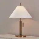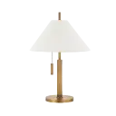 The Clic Table Lamp combines clean geometric forms with classic materials. Its square body, circular base, and tapered linen shade create visual interest, while the patina brass finish adds warmth and sophistication to any space.