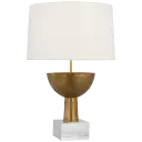 The Eadan table lamp combines museum-quality brass craftsmanship with a classic linen shade, creating sophisticated ambient lighting. At 26 inches, it provides substantial presence without overwhelming spaces.