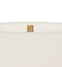 - Natural linen shade provides soft, diffused lighting