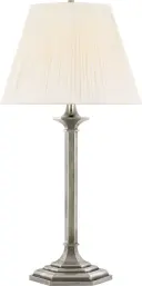 The Irving 27" table lamp combines classic design with sophisticated Butler's Silver finish and luxurious silk pleated shade. Its medium scale makes it versatile for bedrooms, living spaces, and offices.