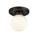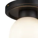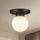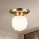 The Fiore Semi-Flush Mount brings vintage charm and whimsy to any space with its captivating interplay of light and shadow through glossy opal glass and decorative metal rings, perfect for compact spaces.