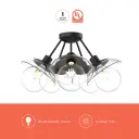 The Francesca semi-flush mount blends classic Sputnik styling with contemporary glass petals, creating a striking focal point. Its 20-inch diameter and matte black finish make it versatile for various spaces.