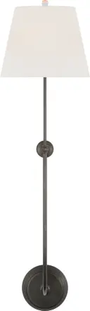 The Wyatt sconce makes a bold architectural statement at 39 inches tall. Its substantial presence and classic bronze finish with linen shade create sophisticated ambient lighting perfect for high-impact wall applications.