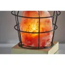 The Faith Himalayan Salt Lamp combines natural wellness benefits with distinctive industrial styling. Featuring a black metal wire cage and natural wood base, it offers air purification through negative ion release while creating a warm, calming glow.