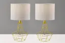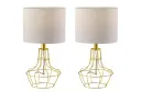 The Stella 2-piece bonus pack delivers modern industrial style with brass metal cage bases and white fabric shades. At 18.75" tall, these compact lamps are perfect for adding character to bedrooms, living spaces, or offices without overwhelming smaller surfaces.