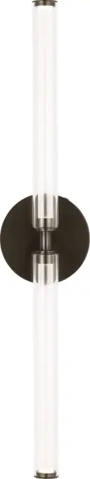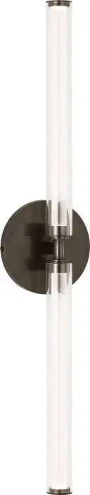 The Poza 26" Vanity Light combines precision-blown glass with twin cylindrical rods for a clean, contemporary aesthetic. Ideal for compact vanities, it delivers warm 2700K illumination with excellent 90 CRI color rendering.