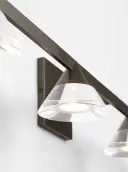The Midrand Crystal Vanity combines industrial minimalism with refined elegance. Its 36-inch span provides ample illumination for double vanities, while conical metal structures paired with crystal diffusers deliver soft, flattering light ideal for grooming tasks.