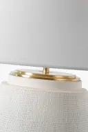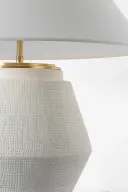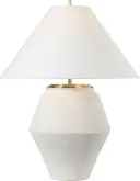 The Aten table lamp combines a sculptural plaster white ceramic base with a classic linen shade, creating a sophisticated lighting solution that works beautifully in both traditional and contemporary settings.