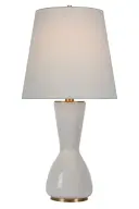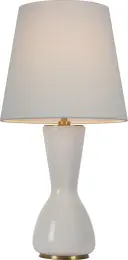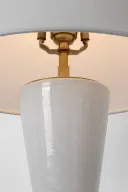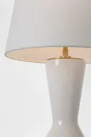 The Jess table lamp combines a sophisticated crackled ivory ceramic base with a classic linen shade, creating a versatile lighting solution that bridges traditional and contemporary design sensibilities.