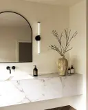 The Braga 28-inch vanity light combines modern design with practical functionality. Its distinctive dual-cylinder design features a frosted inner diffuser and clear acrylic outer shade, creating sophisticated ambient lighting. Integrated LED technology with warm 3000K color temperature provides energy-efficient illumination, while horizontal or vertical mounting options offer installation flexibility.
