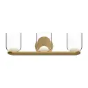 The Cedar vanity light combines whimsical frosted diffusers with clear glass shades for a sophisticated layered look. Integrated LED technology provides warm 3000K lighting, while the brushed gold finish adds contemporary elegance to any bathroom or powder room.