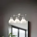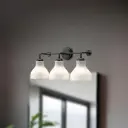 The Westlake vanity light brings 1920s Parisian cafe charm to your bathroom with vintage milk jug-shaped opal glass and clean matte black lines. Its versatile design works beautifully in traditional and contemporary spaces alike.