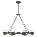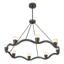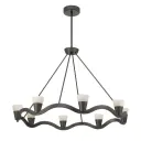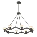 The Vance chandelier combines contemporary design with natural materials, featuring sculptural lines and genuine alabaster stone shades. Its 39-inch linear profile and integrated LED technology make it ideal for modern dining rooms and kitchen islands.