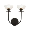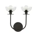 The Sylvia vanity light combines sleek, curved metal forms with delicate dome-shaped clear glass for a sophisticated, feminine aesthetic. Perfect for bathrooms and powder rooms, this 12-inch fixture offers modern elegance with classic appeal.